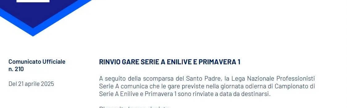 北京时间4月21日消息,意甲官方发布公告:由于罗马教皇去世,本计划今日进行的帕尔马VS尤文图斯等4场比赛推迟。